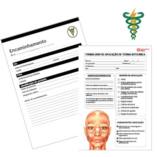 •Ficha de avaliação dermato • Ficha de avaliação botox •Modelo orientações pós tratamento • Modelo de TCLE •Modelo de contrato com paciente